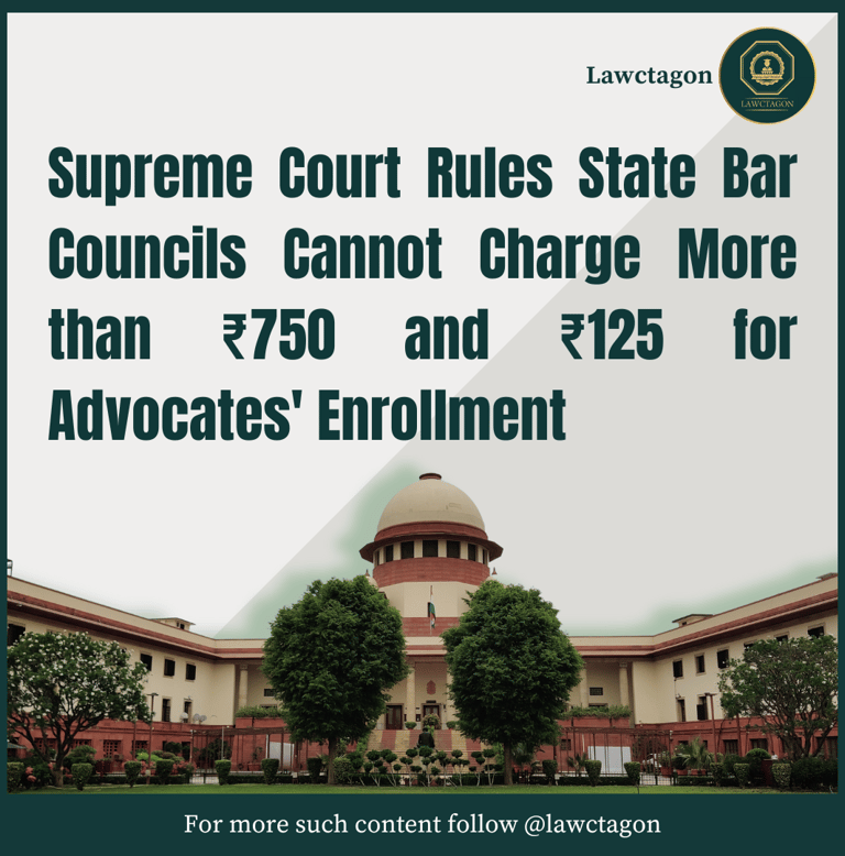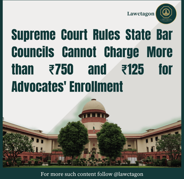 Supreme Court Rules State Bar Councils Cannot Charge More than ₹750 and ₹125 for Advocates' Enrollment